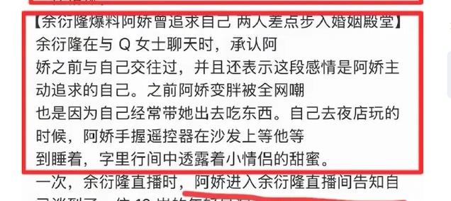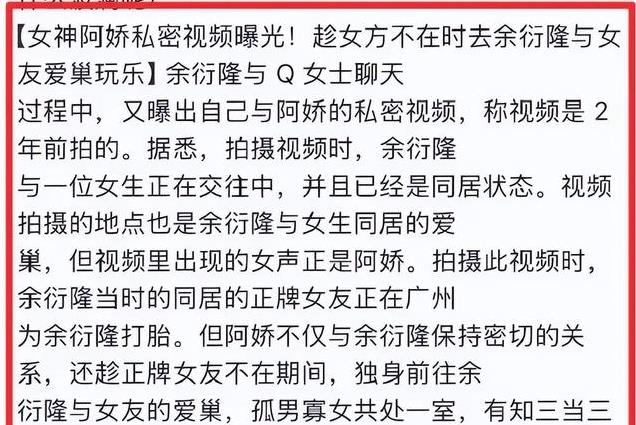 据称,两人关系不清不楚的这段时间,余衍隆是有正牌女友的。