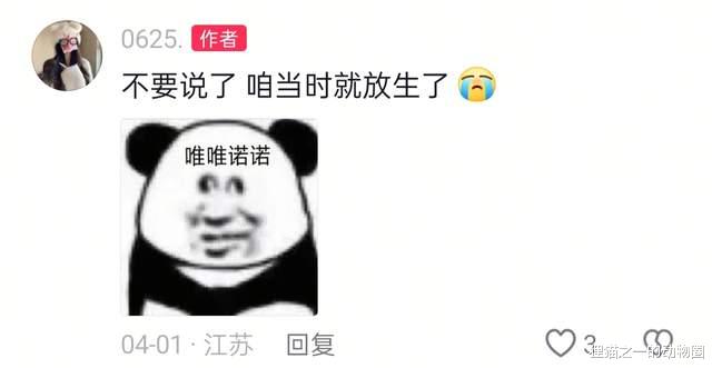 博主听到网友们的回复,表示自己当时就已经放生了,还配上了“唯唯诺诺”的表情包来表示害怕。