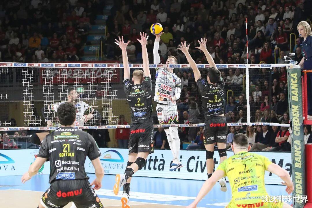 第三局,奇维塔诺瓦终于找回节奏,主攻博托洛与尼科洛夫在边路轮番突破,拦防质量明显提升,尤其是副攻加尔吉洛在网口频频建功,连续两次封死塞门纽克的强攻,令佩鲁贾阵脚一度紊乱。在18-18平分之后,奇维塔诺瓦把握住关键反击机会,尼科洛夫在发球线上轰出一记ACE,直接将比分带至24-22,随后再通过一次吊球成功扳回一城。