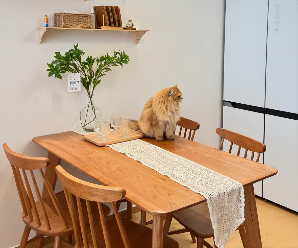不管岩板餐桌有多流行,要是让我选购,我一定选择实木餐桌,颜值高还舒适,不会给人冰冷感,反而让餐厅都温馨多了。