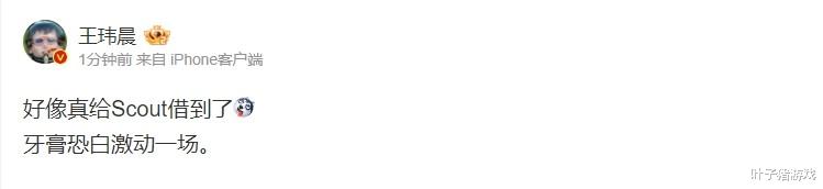 此外,体坛周报的记者王玮晨也在微博透露:“好像真给Scout借到了,牙膏恐白激动一场。”