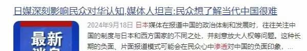 信息源:环球时报2024-09-18《日媒深刻影响民众对华认知,媒体人坦言:民众想了解当代中国很难》