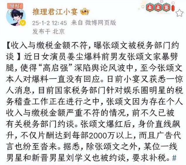 偏偏此时,又爆出张颂文缴税方面出现了问题,被税务部门约谈。