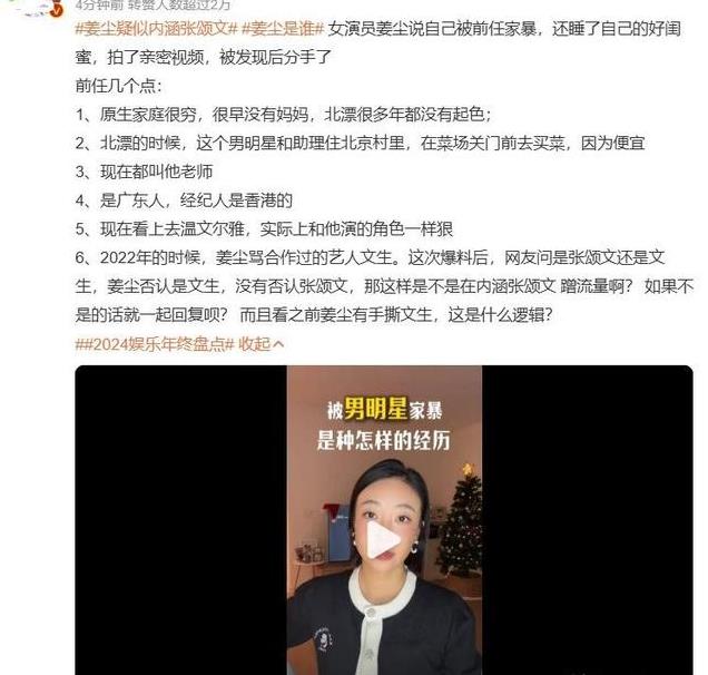 原来,在姜尘的自述中,她的前任不仅家暴过她,还拍下了不少不雅视频。
