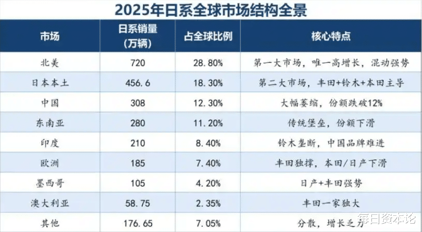 更关键的是,在北美这一全球核心汽车市场,中国车企几乎未能突破。美国、加拿大对中国电动车征收超过100%的关税,使得这片日系车最稳固的“第二故乡”——2025年日系在北美销量达720万辆,占其全球总销量约28%——成为中国车企难以逾越的屏障。值得留意的是,加拿大最近决定将中国电动车的关税降至6.1%,并给出4.9万辆的年度配额,这虽然只是一个小缺口,却也为未来的突破提供了想象空间。