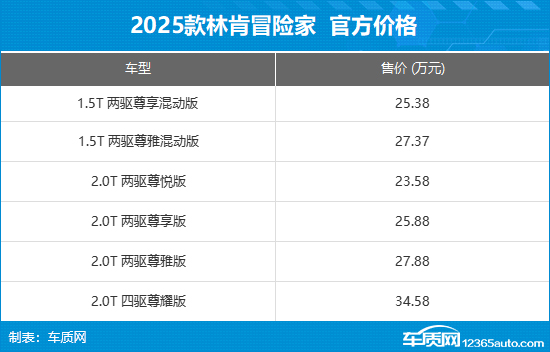 日前,车质网从官方获悉,2025款林肯冒险家正式上市,新车推出6款车型,售价区间23.58-34.58万元。作为年度改款车型,其主要调整了部分配置,动力依旧提供1.5T混动和2.0T汽油发动机可选。