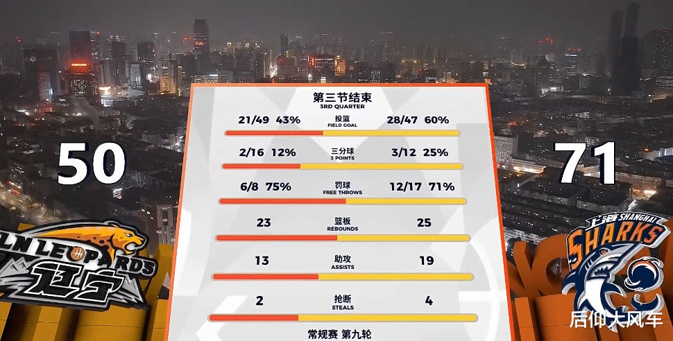 三节上海只扔进了3记三分,罚球17-8辽宁。