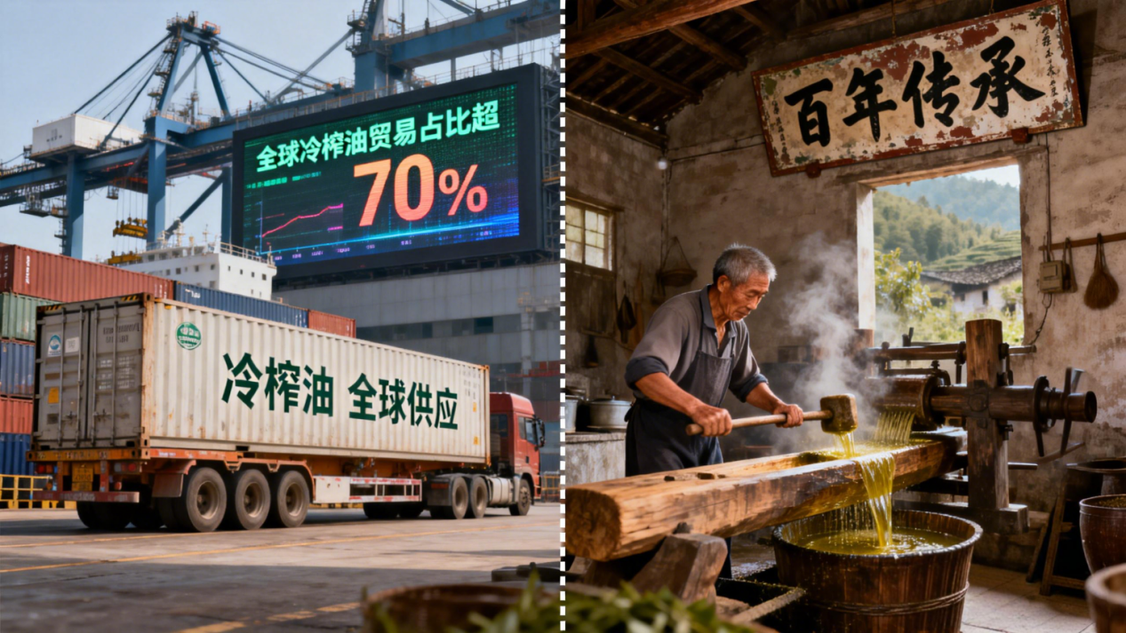 冷榨油横扫全球的真相:工业资本如何围剿传统油脂文化摘要冷榨油并非因技术优越成为全球主流,而是其“便宜、复制快、无文化壁垒”的特性完美契合资本对全球供应链的需求。它将油脂从文化生产变为机器生产,边缘化了依赖土地、技艺、时间的传统热榨工艺(如热榨茶油)。本文通过对比冷榨与热榨的核心差异,反思全球供应链背后的文化失落,唤起对传统工艺传承的关注。一、冷榨油的全球扩张:一组值得警惕的数据全球冷榨油贸易占比超70%,传统热榨工艺渐成“小众”