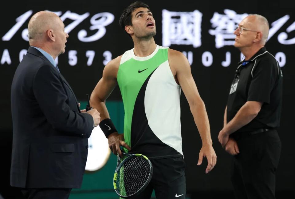北京时间2月1日,澳大利亚网球公开赛男单决赛在墨尔本罗德·拉弗球场结束,世界第一卡洛斯·阿尔卡拉斯以2-6、6-2、6-3、7-5逆转击败诺瓦克·德约科维奇,夺得个人首个澳网冠军,同时完成生涯全满贯(澳网、法网、温网、美网均有冠军),以22岁272天年龄成为公开赛时代最年轻的全满贯得主,打破拉斐尔·纳达尔保持的24岁101天纪录。这是阿尔卡拉斯生涯第7个大满贯冠军(澳网1、法网2、温网2、美网2),也是他职业生涯的又一历史性里程碑。