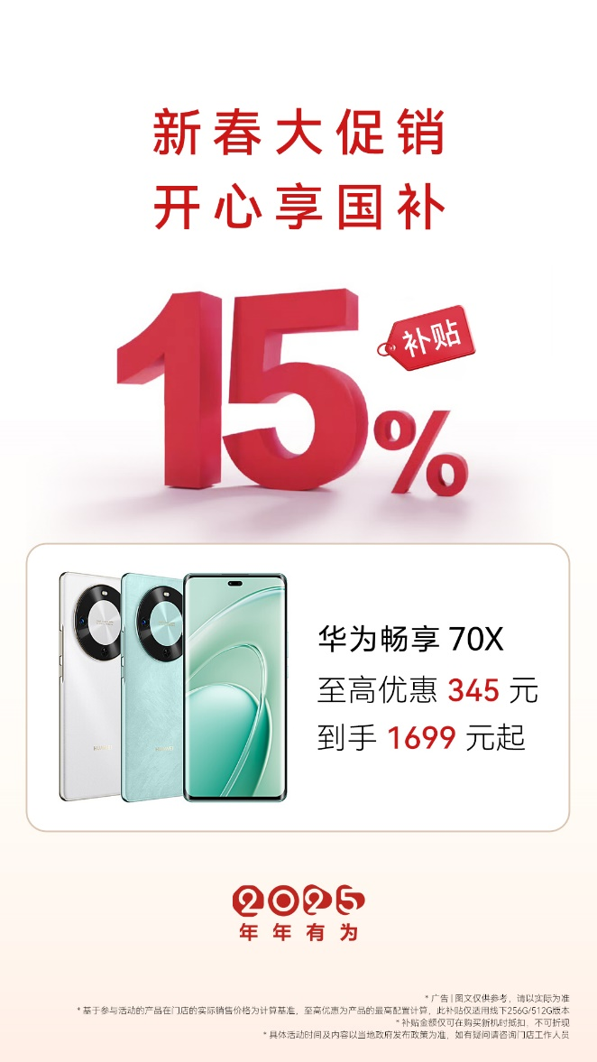 综合来看,作为畅享系列的全新力作,华为畅享 70X不仅在通信能力上实现了“满级”突破,更在续航、影像、屏幕以及耐用性等多方面表现出色,全方位满足了用户在日常使用和户外出行中的多样化需求,是名副其实的“全能选手”。关键是现在购机还可享国补优惠,到手价低至1699元起,感兴趣的小伙伴可不要错过了。