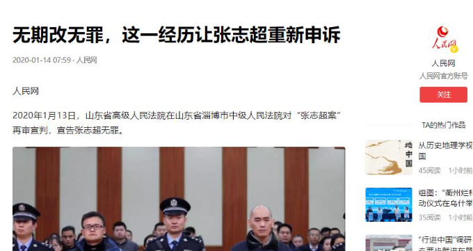 [1] 【人民网】——《无期改无罪,这一经历让张志超重新申诉》