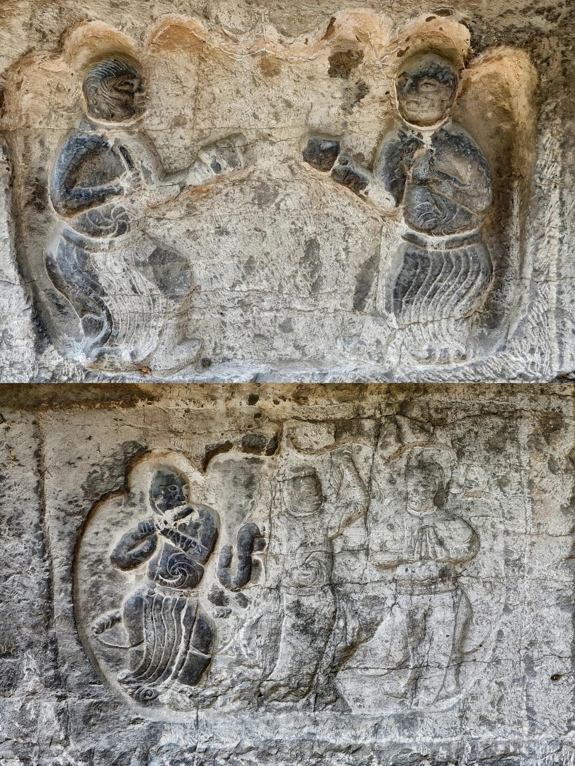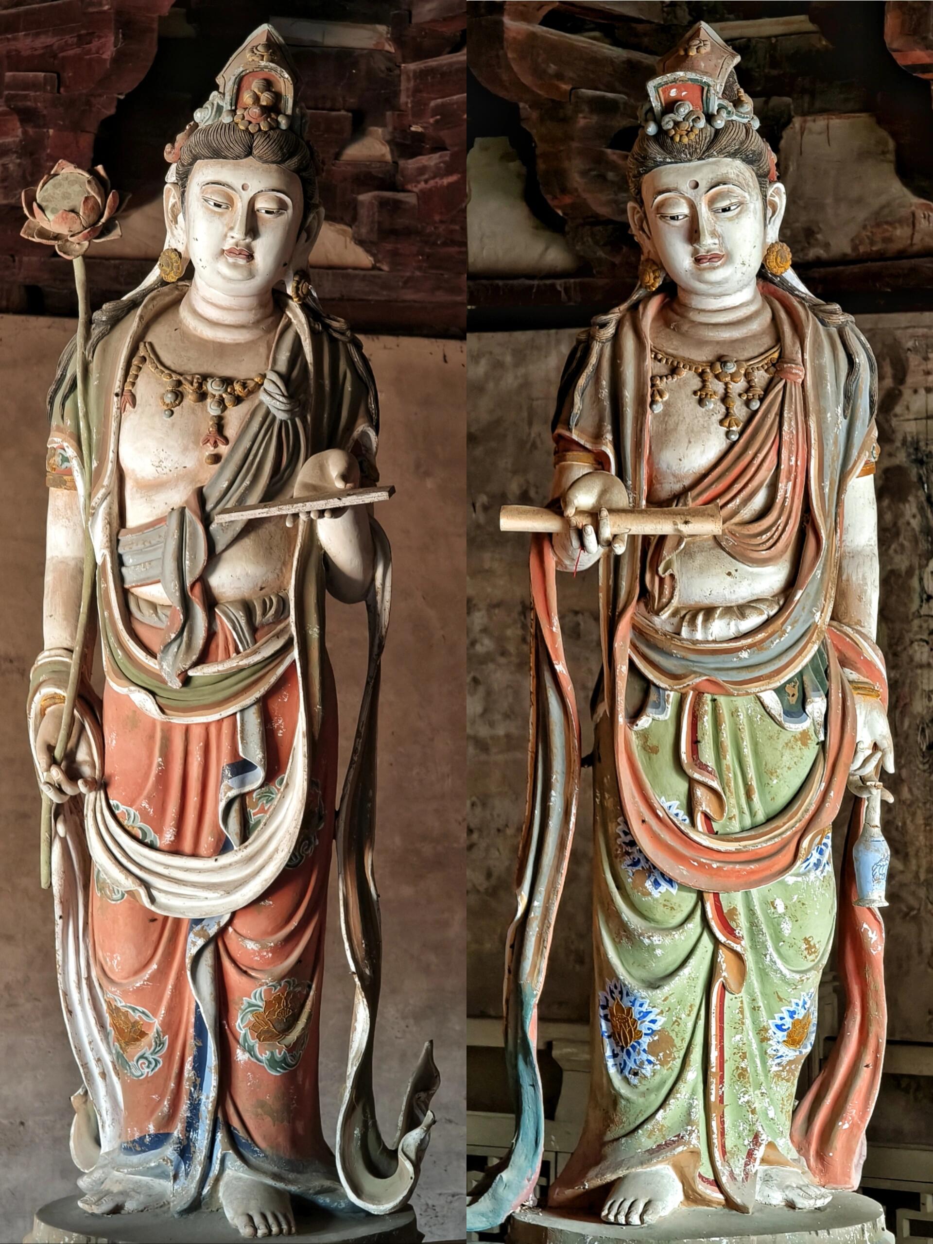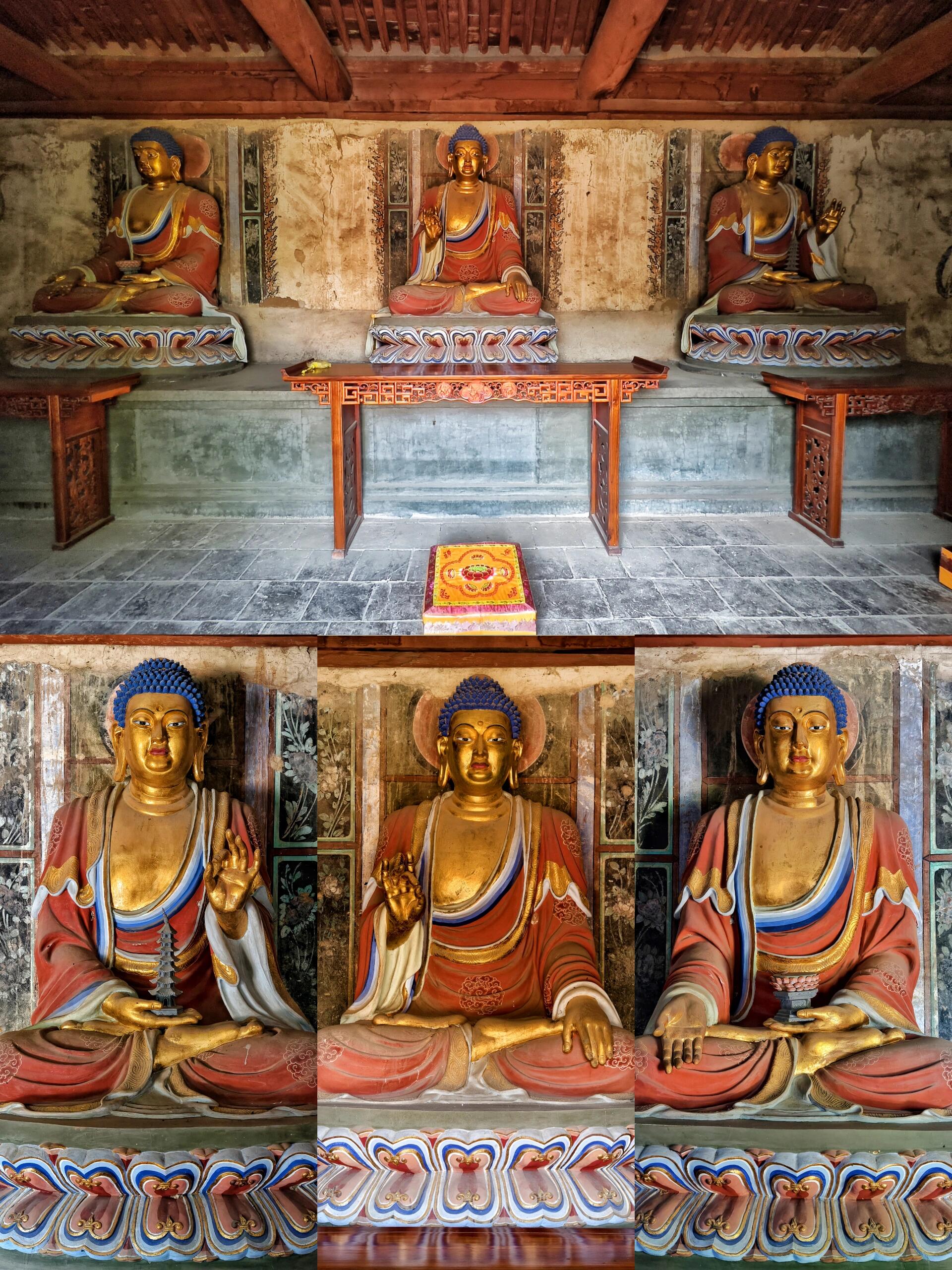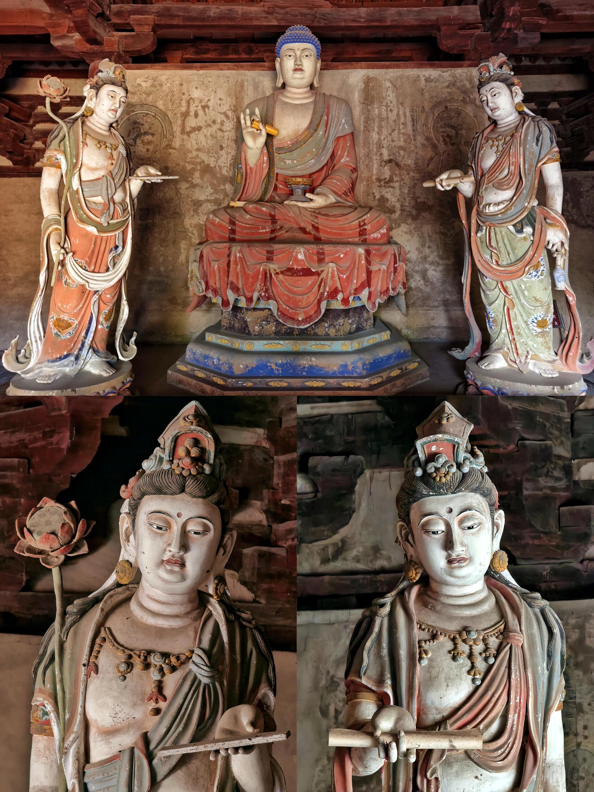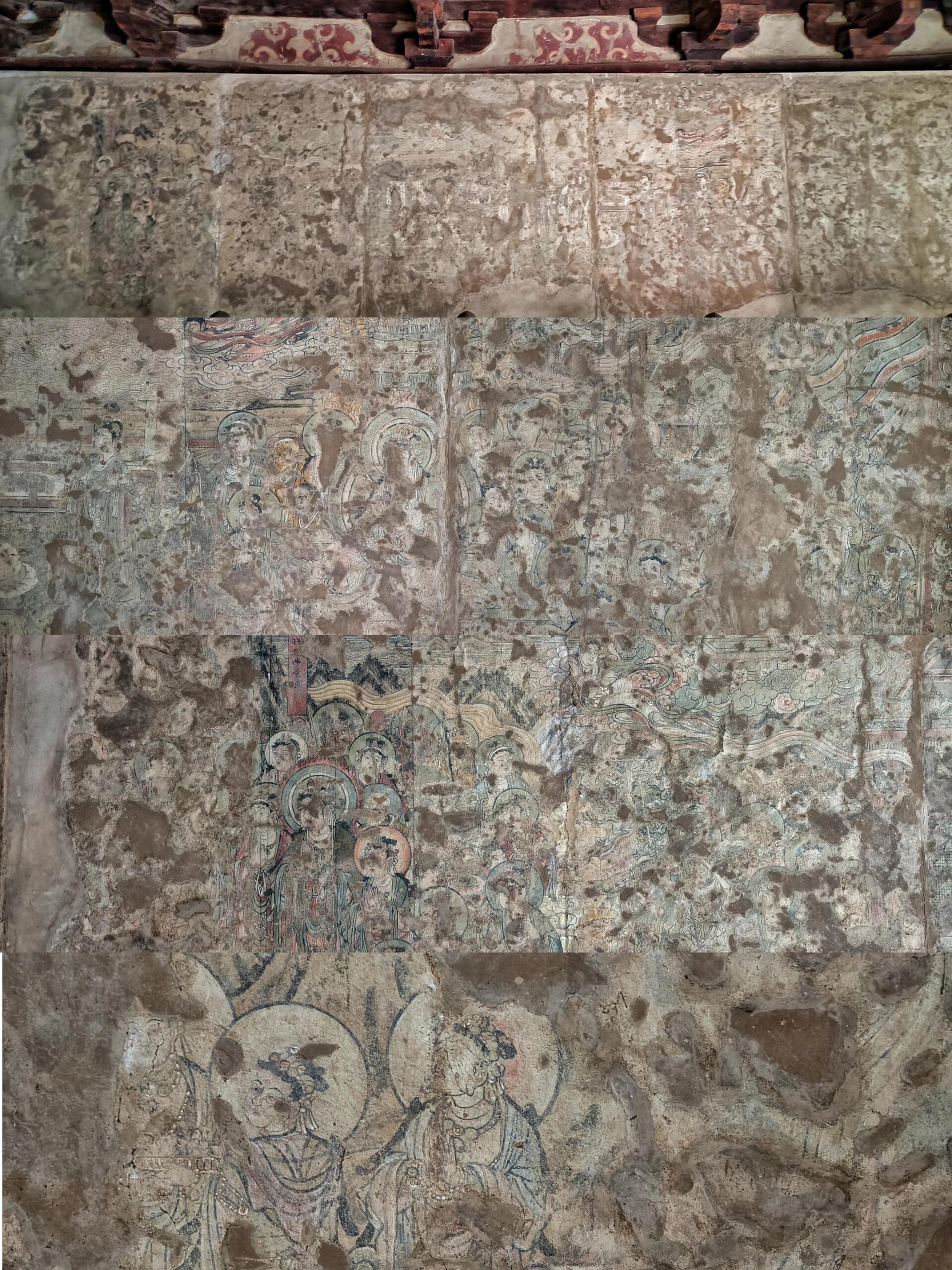 推开弥陀殿的木门,仿佛踏入了另一个世界。殿内21平米的壁画,历经岁月的侵蚀,依然散发着独特的魅力。在敦煌莫高窟之外,如此完整的五代壁画堪称绝无仅有。画师们用细腻的笔触,描绘出佛教经典中的故事与场景,人物神态各异,色彩虽已褪去几分鲜艳,却增添了岁月沉淀的韵味。每一处线条,每一抹色彩,都凝聚着古代画师的心血,让人不禁想象,在那个没有现代绘画工具的年代,他们是如何一笔一划勾勒出这震撼人心的画面。