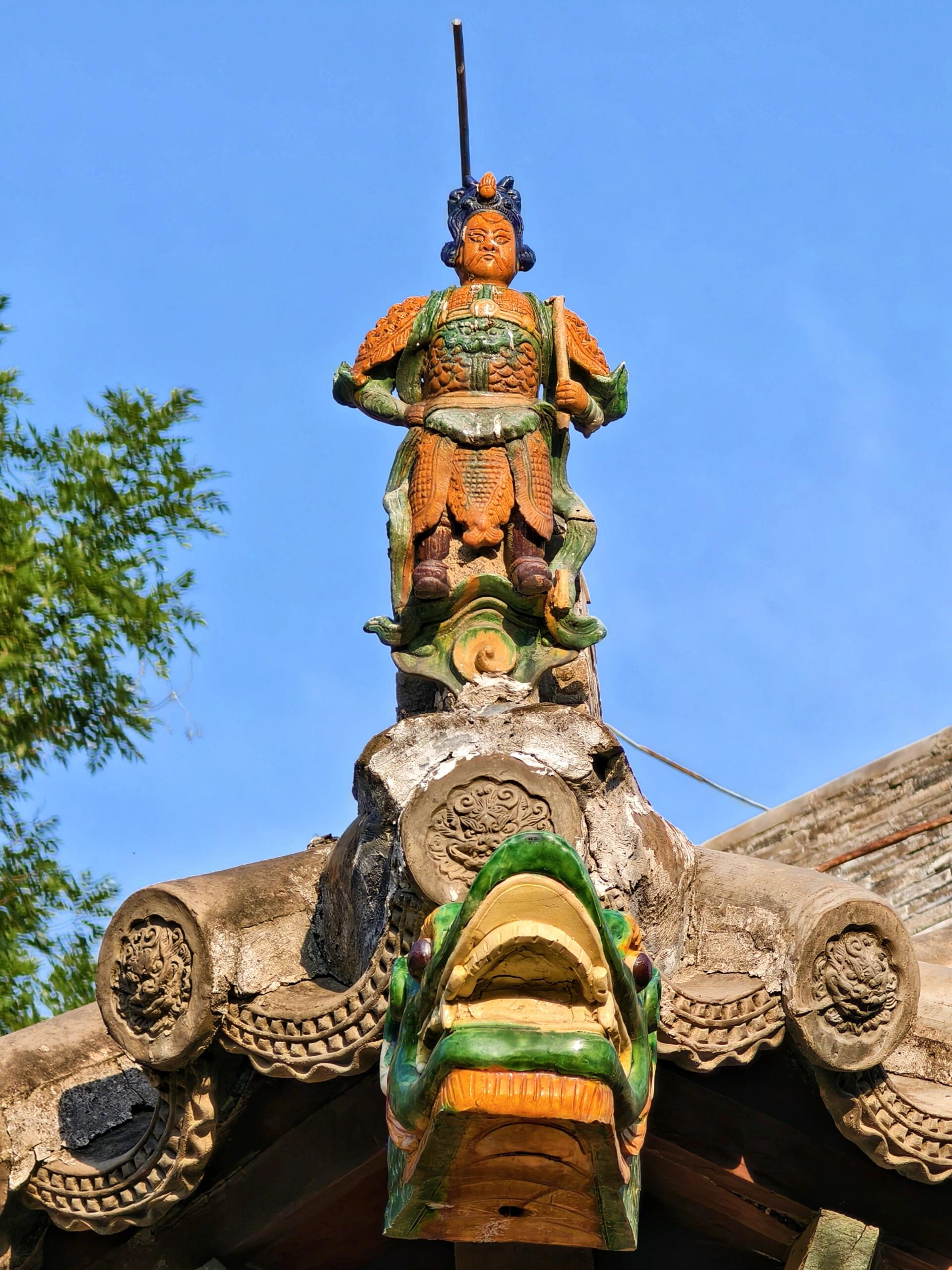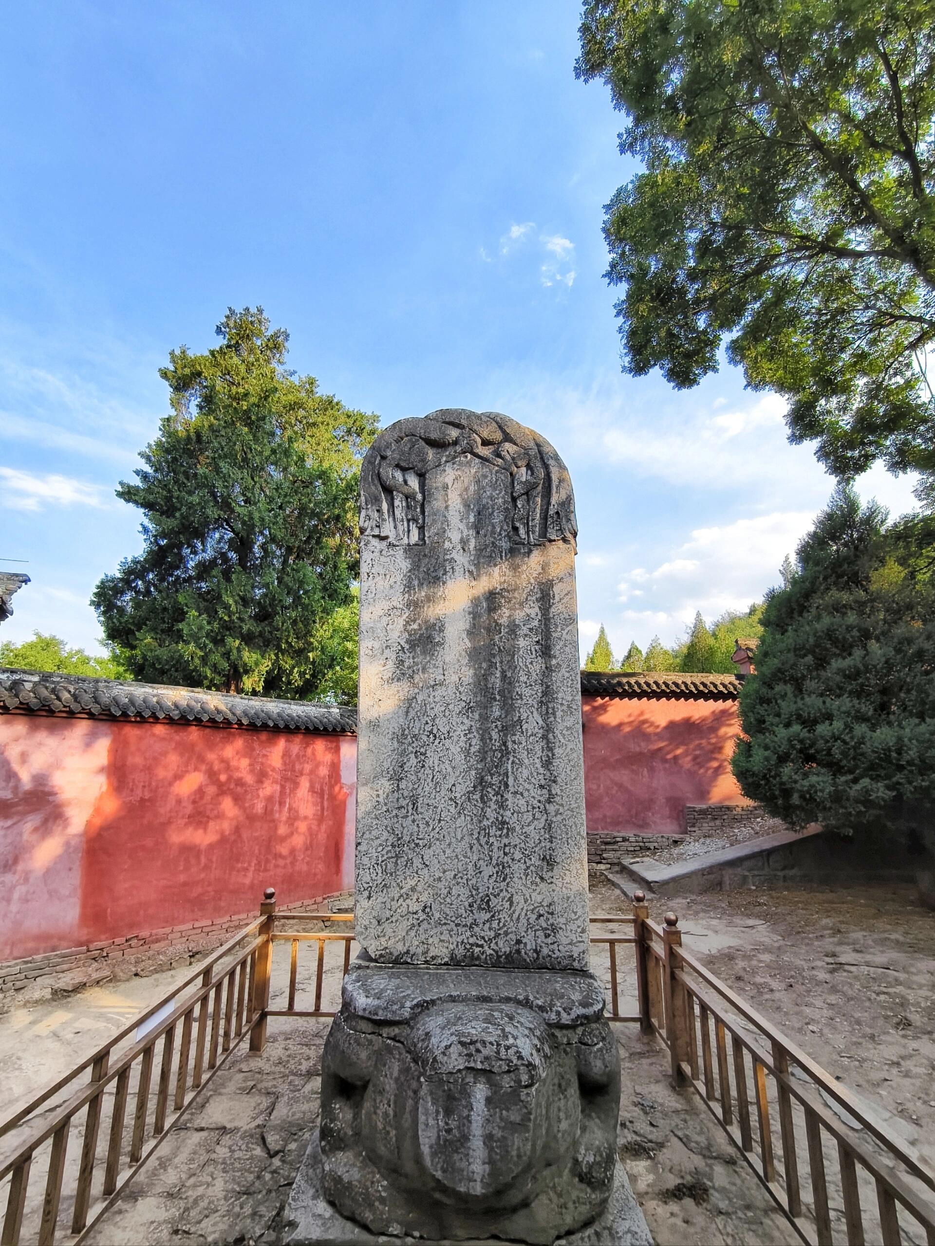 走出殿宇,山门外的七宝塔同样吸引眼球。这座宝塔每层都雕刻着不同的图案,从神话故事中的神兽,到佛教经典中的法器,每一处雕刻都细致入微,展现出古代工匠精湛的技艺。绕着宝塔细细观赏,转到柱身背面,一幅“妇人启门图”映入眼帘。这种图案常见于宋金时期的墓室之中,出现在佛塔之上却十分罕见。它仿佛一扇通往未知世界的门,引发人们无尽的遐想:画中妇人为何开门?她是要迎接谁,还是要去往何处?这个小小的雕刻,为庄重的宝塔增添了一丝神秘的色彩,也为研究古代文化习俗提供了别样的视角。