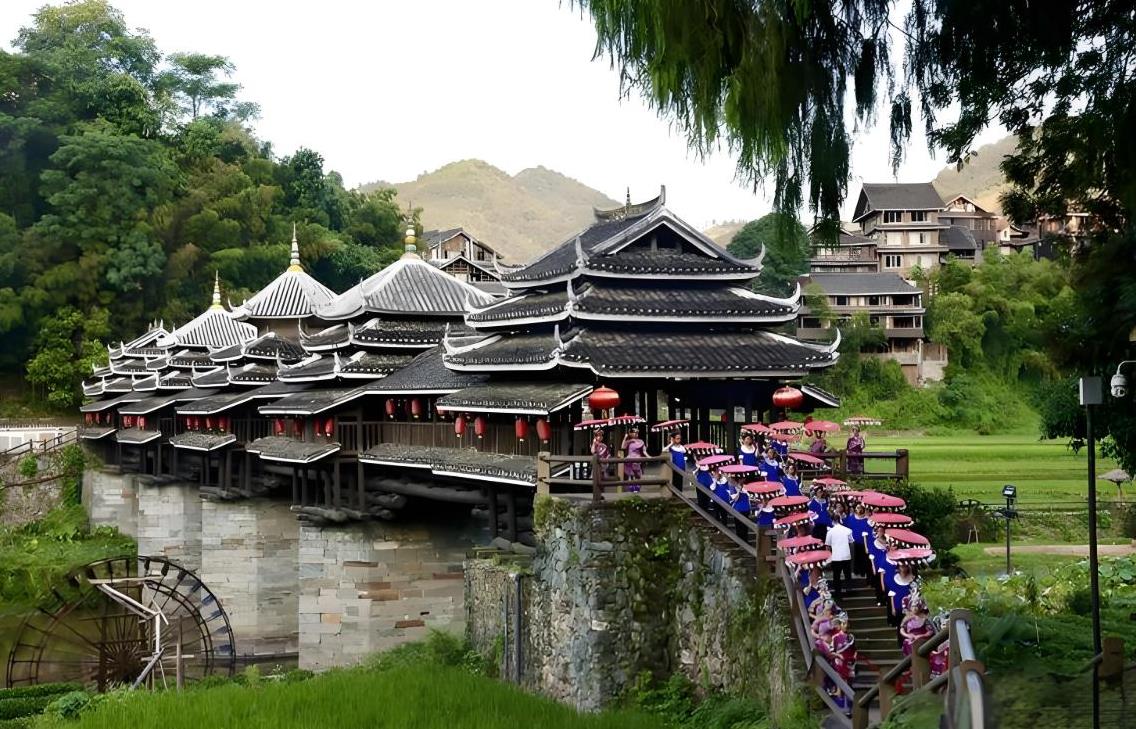 曾天真地以为,广西的美只在阳朔。然而,当踏入柳州三江县,才惊觉原来这里藏着一处古老侗乡的宁静桃源——程阳八寨。众所周知,南方少数民族大多聚居深山,村寨常依山傍溪而建,为方便与外界往来或连接各个寨子,廊桥便应运而生。廊桥不仅有遮风挡雨的屋顶,两侧还设有坐凳,既能在雨天为行人提供庇护,也能让人们在暑热时在此乘凉休憩。而且,大型廊桥往往承载着宗教意义,是村民供奉信仰神祇的神圣之地。而程阳八寨内就坐落着永济桥、普济桥、合龙桥、万寿桥以及平安桥这五座风雨桥,其中又以永济桥声名远扬,连郭沫若先生也曾对其盛赞有加。