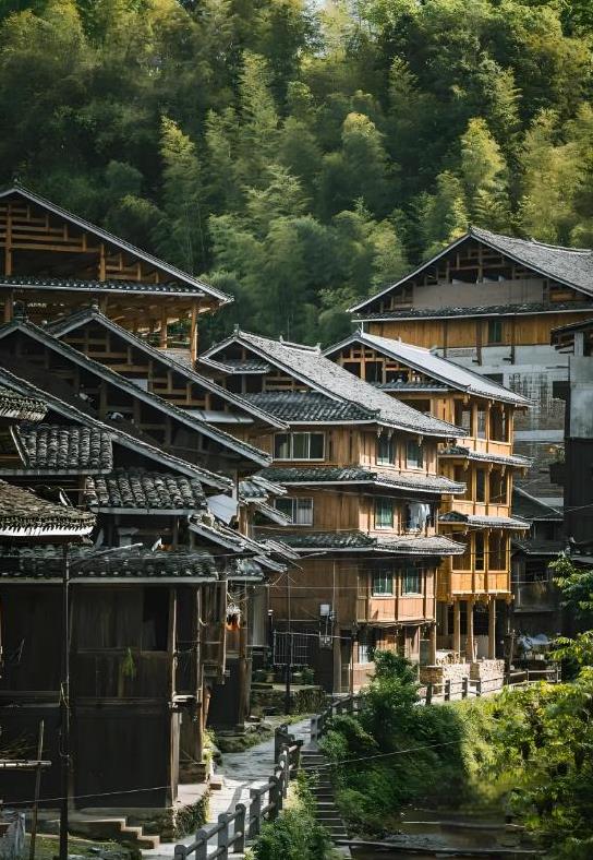 当然,跨过永济桥,便是正式的进寨了。在程阳八寨景区中,平寨、岩寨、马鞍寨作为景区的核心区域,干栏式与平地式木板楼鳞次栉比,它们依傍着河流,顺着山势,巧妙地顺应地形排列,自然而然地形成了纵横交错的街巷。可以看到这里的民居大多为三层半,不少新建的则有四到五层。临街的民居,一层多被改造成店铺、餐馆,也有许多民宿客栈,质朴的招牌透露着生活的温度。漫步在寨中,侗族人民的生活场景随处可见,老人们坐在门口悠闲地聊天,孩子们在街巷中嬉笑玩耍,浓浓的侗族风情如轻柔的微风,拂面而来。