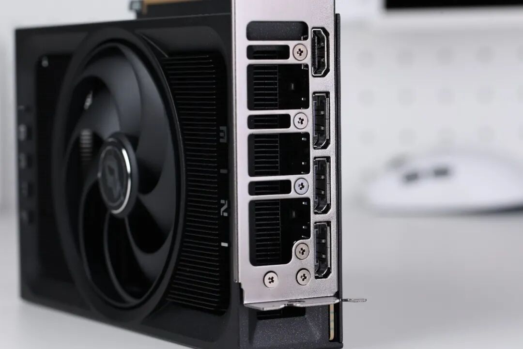 视频接口一侧提供了3×DP2.1b+1×HDMI2.1b的配置,同时此处采用镂空设计做装饰。