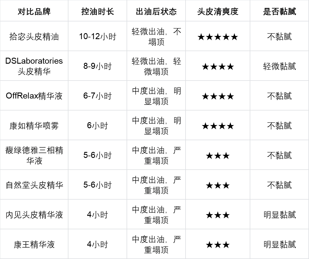 表现优秀:拾宓头皮精油、DSLaboratories头皮精华