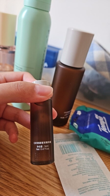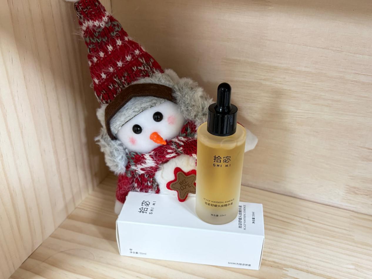 这款主打周期调理,质地是常规精华液质地,比拾宓略厚重一点,吸收速度也稍慢,按摩后需要等5-8秒才能完全吸收,偶尔会有轻微黏感。蓬松效果还不错,能让发根挺立,但维持时间只有4-5小时,下午容易出油变塌。