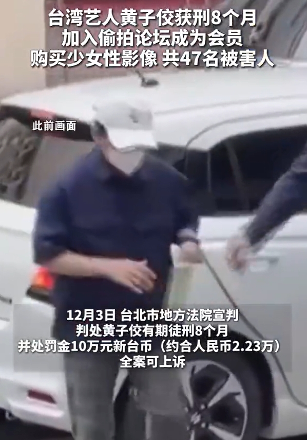 12月3日,有台媒报道:黄子佼因“无正当理由持有少年性影像罪”被判处有期徒刑8个月,并处罚金10万台币。