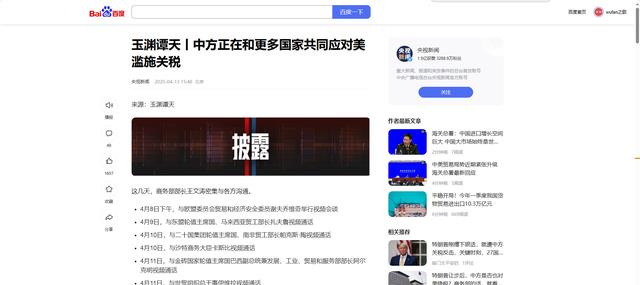参考信源:央视新闻2025-04-13玉渊谭天丨中方正在和更多国家共同应对美滥施关税