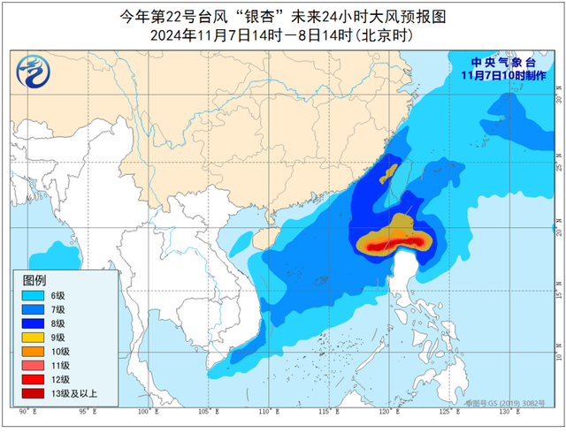 台风“银杏”自11月4日生成以来,一路向西北方向移动,强度逐渐增强。预计“银杏”将于7日夜间或8日凌晨擦过或登陆菲律宾吕宋岛西北部沿海(强台风级或超强台风级),之后移入南海东北部海域,并给我国南部海域带来明显大风。
