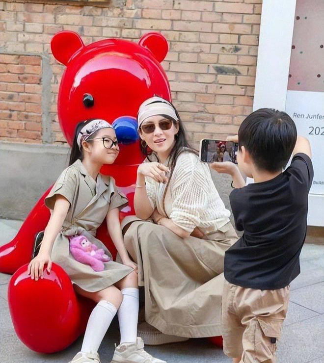 她带儿女参加活动时,笑容温柔、满眼宠溺,没了当年的锋芒,多了母亲的温柔从容。