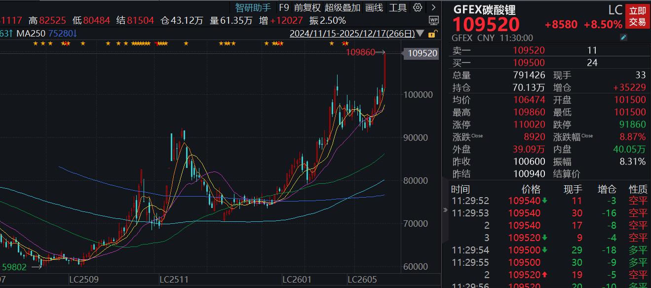 稀有金属板块的强势,源于供给约束与需求升级的双重驱动。近期关键金属价格持续走高,尤其是碳酸锂的价格持续走高。最近已突破10万元/吨。