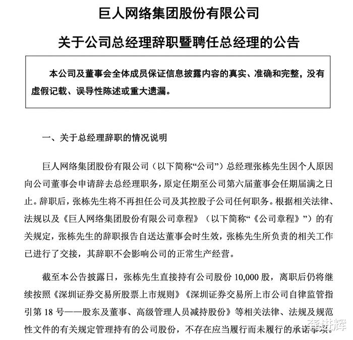 没有一丝丝防备,知名游戏巨头巨人网络突然宣布换帅。
