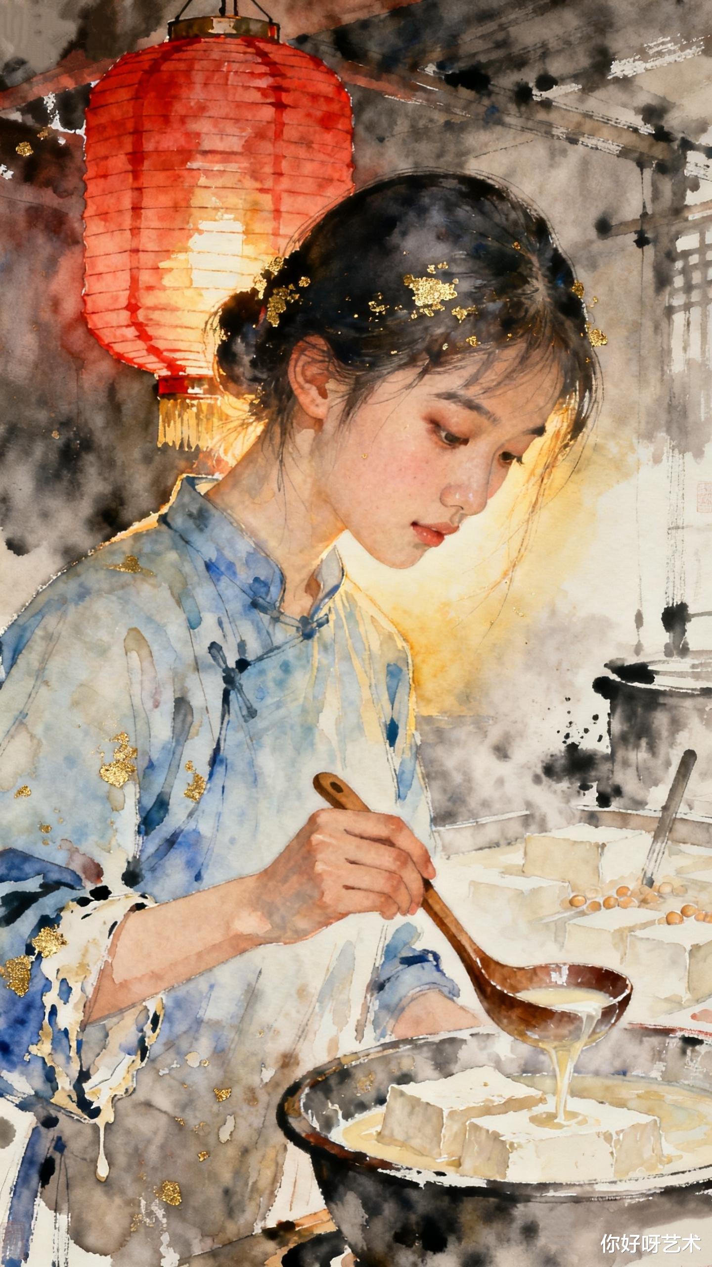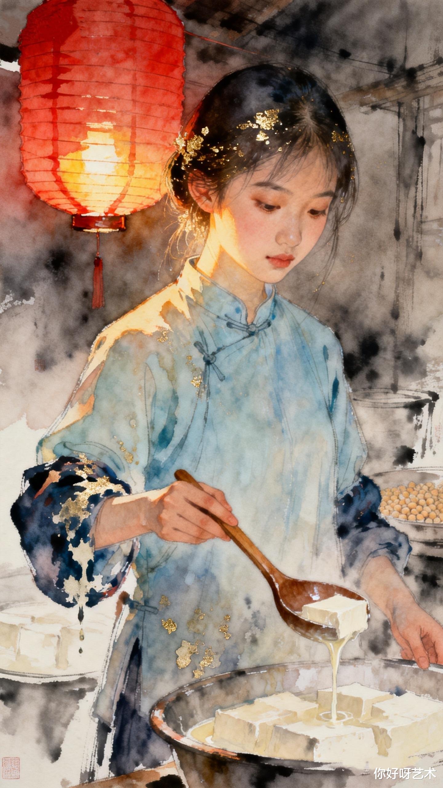 灶台上的颜料盒还敞开着,钴蓝与赭石在瓷碟里静静相融。阿沅轻轻合上盖子,听见窗外传来卖糖人的吆喝声,混着远处孩童的嬉闹,像一曲未完的水彩交响。她系上围裙,准备开始新的一天——因为腊月二十二豆腐,还等着她去磨出更多的层次与温柔。