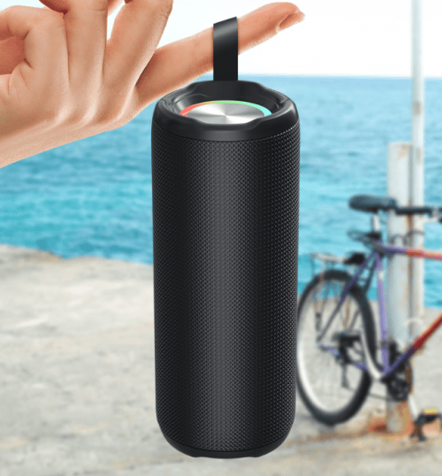 优点:这款音箱采用细密编织网布面料,手感柔软且耐用,能够有效防刮抗撞,适合带出门使用。侧边的灯光设计为它增添了不少氛围感,尤其在夜晚点亮时,能够瞬间提升场景的氛围,特别适合户外聚会和露营使用。