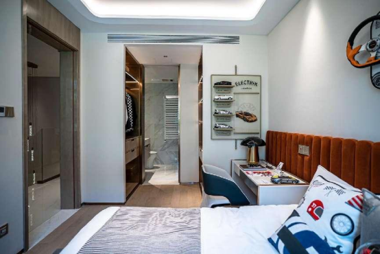 首层老人房与庭院相连,每日鲜氧与阳光相伴,同时免去爬楼困扰,闲时饲花弄草含饴弄孙,不亦乐乎。二层充满童趣的儿童房,给孩子一个自由发挥的空间,更可与主卧相连通,便于对孩子的贴心照顾。