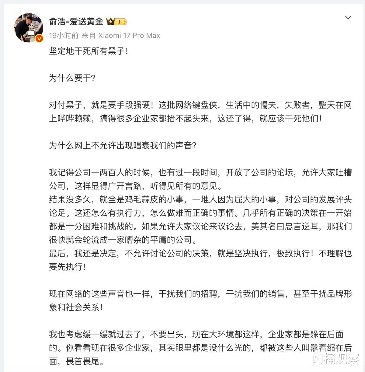 俞浩不想做一家“嘈杂的平庸公司”,我们这个社会,或许也不该容忍一个“嘈杂的平庸舆论场”。