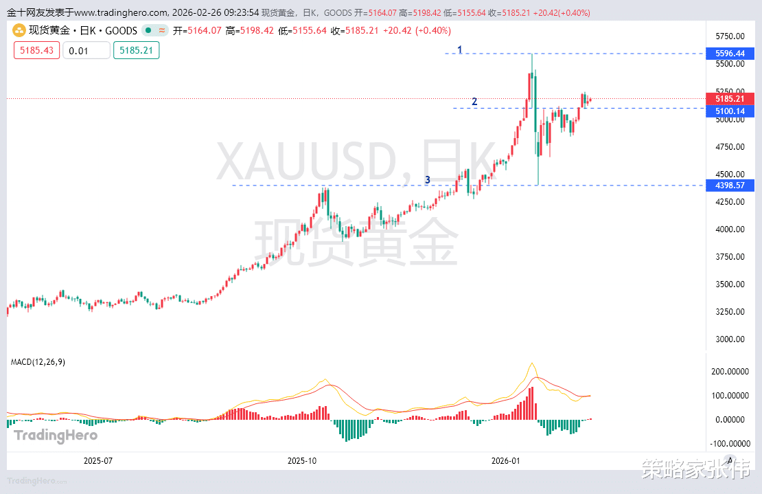 黄金图中1是2026年高点,能否成为今年高点还需时间,黄金图中2为今年的低点,同样高低点出现,已经拉开了大区间的范围。