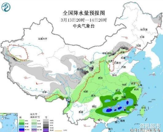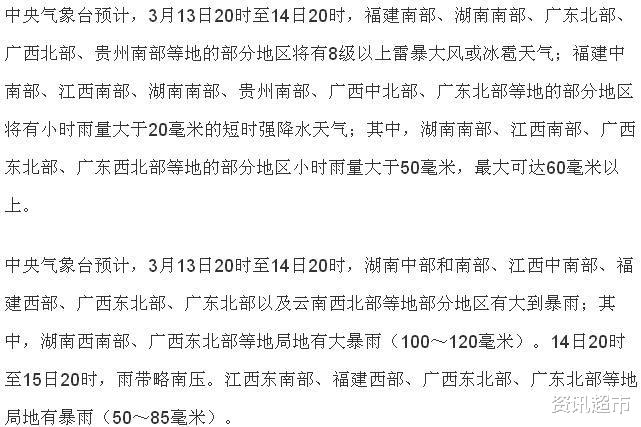专家表示,监测数据表明,昨晚(12日)到今天(13日),江南和华南北部出现大范围中到大雨;期间,广东怀集和浙江泰顺遭遇暴雨。而根据最新的气象资料分析,今晚到明天(14日),江南南部和华南北部等地还将有强降雨和强对流。为此,中央气象台发布暴雨蓝色预警和强对流天气蓝色预警。