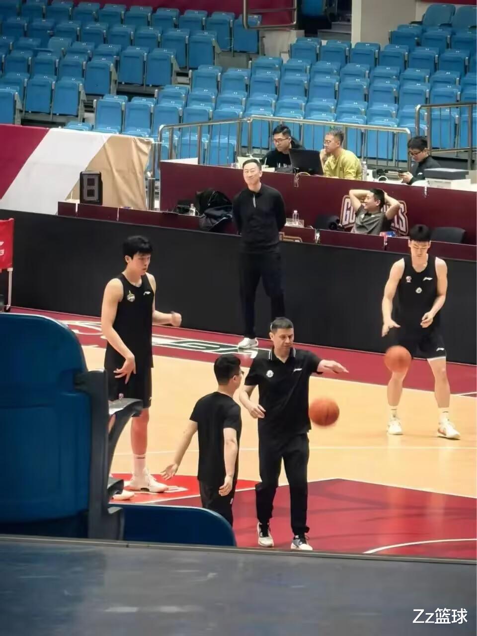 青岛对阵浙江的二番战,第一节比赛开始前,镜头给到场边,刘维伟今日不在场边执教,刘明涛临场指挥,不过有球迷发现了刘维伟人在义乌,昨天带着踩场。估计只是避免客场义乌观众的热情,如有下一场回青岛应该还是刘维伟来带队。