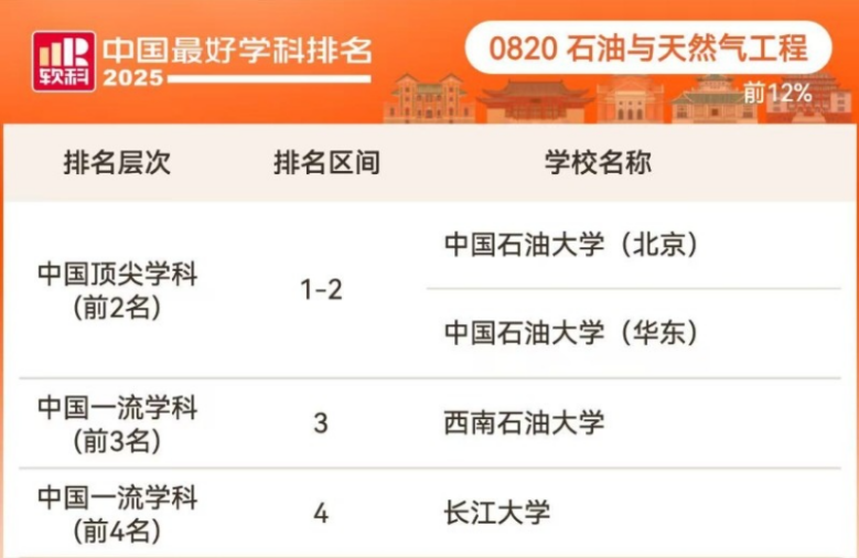 近日,高等教育评价专业机构软科发布“2025软科中国最好学科排名”。长江大学石油与天然气工程学科排名全国第4名,入选“2025软科中国一流学科”。