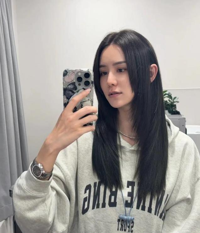 张馨月自己对这次的新发型应该也是满意的,不然不会直接晒出四张自拍照了。