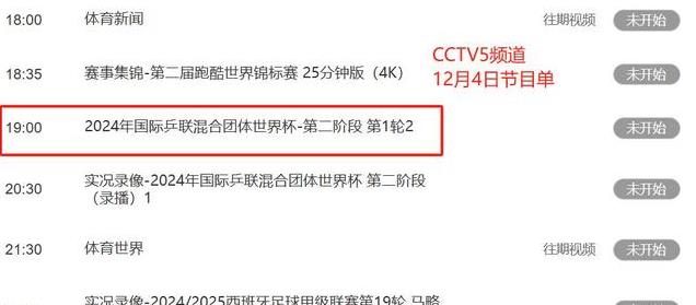 12 月 4 日CCTV5 的转播计划将安排在下午 13 点的比赛 转播,而 CCTV5 则转播 NBA 季中赛。到了晚上 19 点,CCTV5 主频道将转播比赛,按照惯例,中国队的比赛大概率会被安排在这个黄金时间。