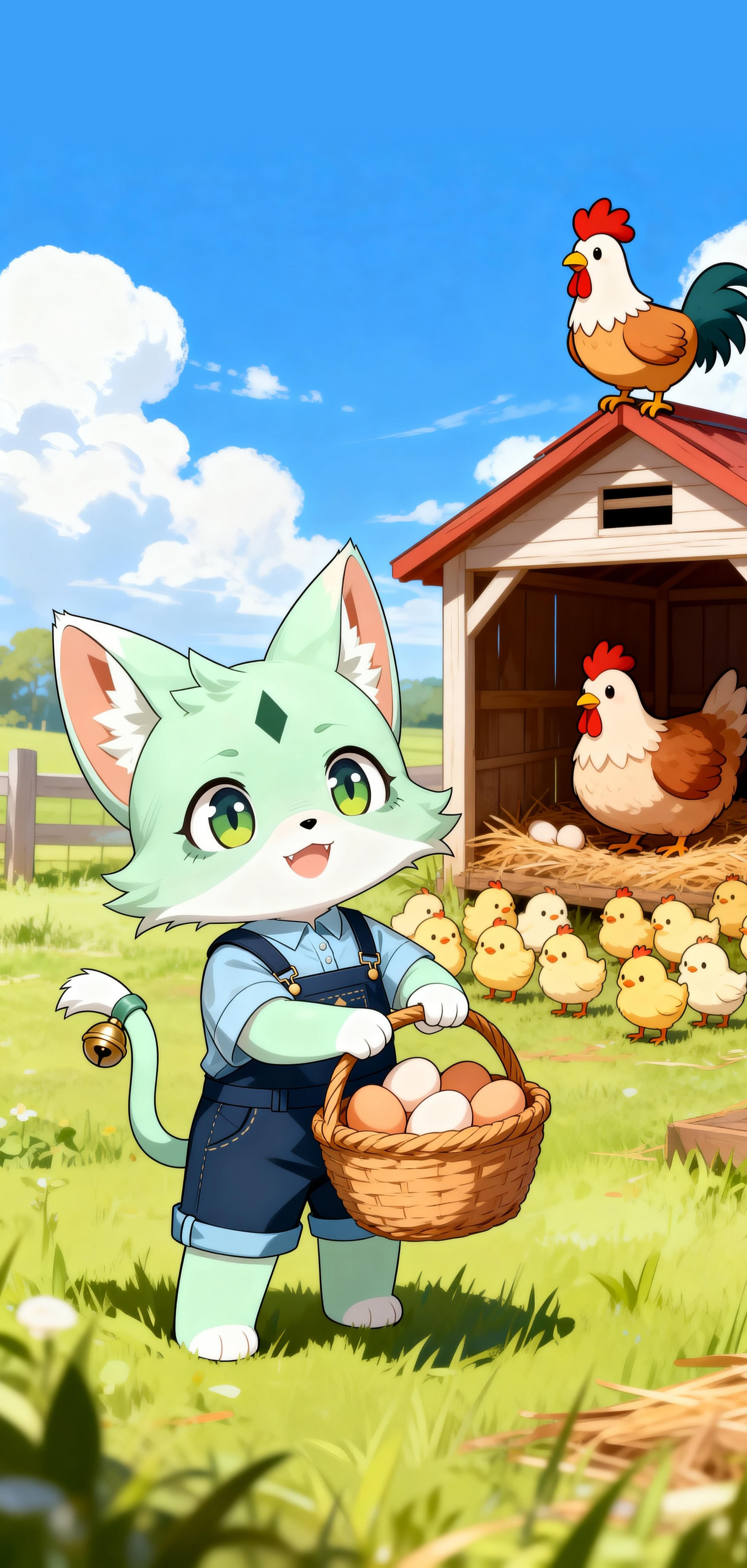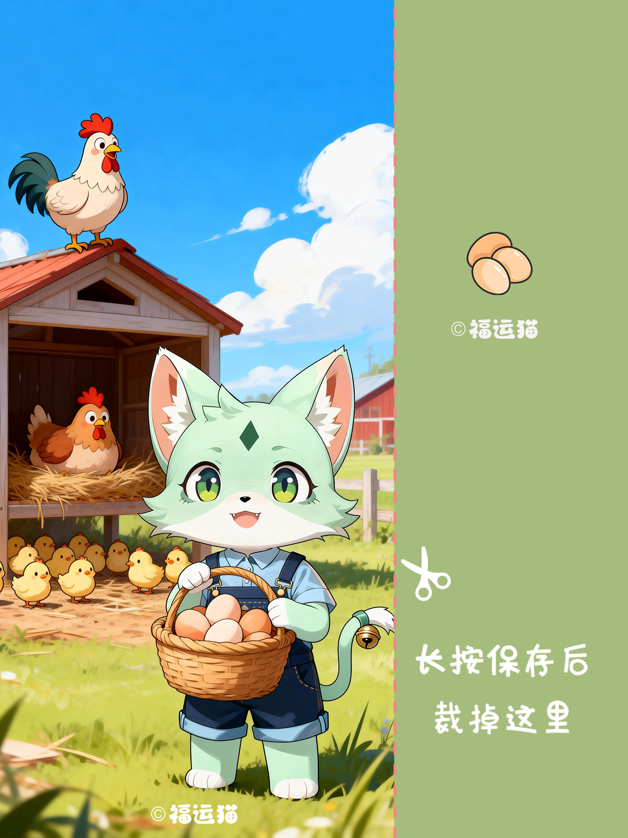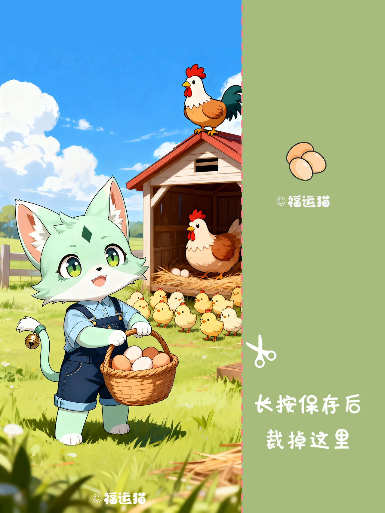 治愈神器来了!福运猫森泽新场景太绝了😂 穿背带裤蹲青草里晃铃铛尾,爪边小鸡仔啾啾叫,竹篮鸡蛋带草屑温乎气~ 翠禅族“平