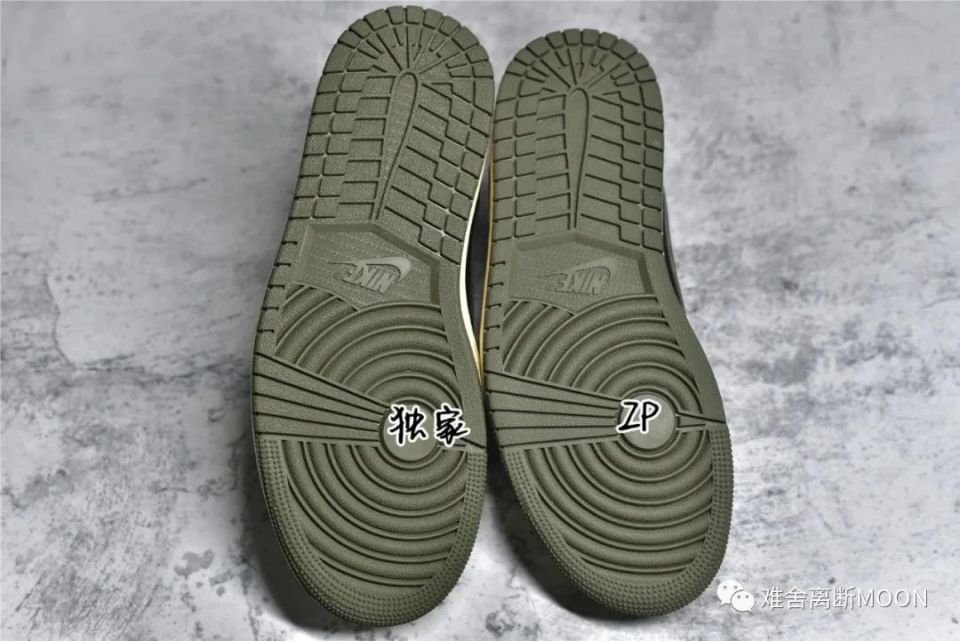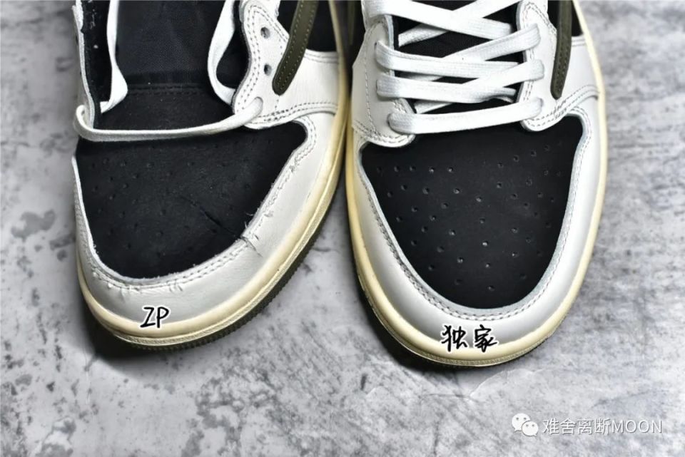 我们对比的是提前款流出的橄榄绿倒钩,已经被拆过了。鞋型方面是很接近的,鞋头都比较低平,鞋子整体卡色也是一致的。