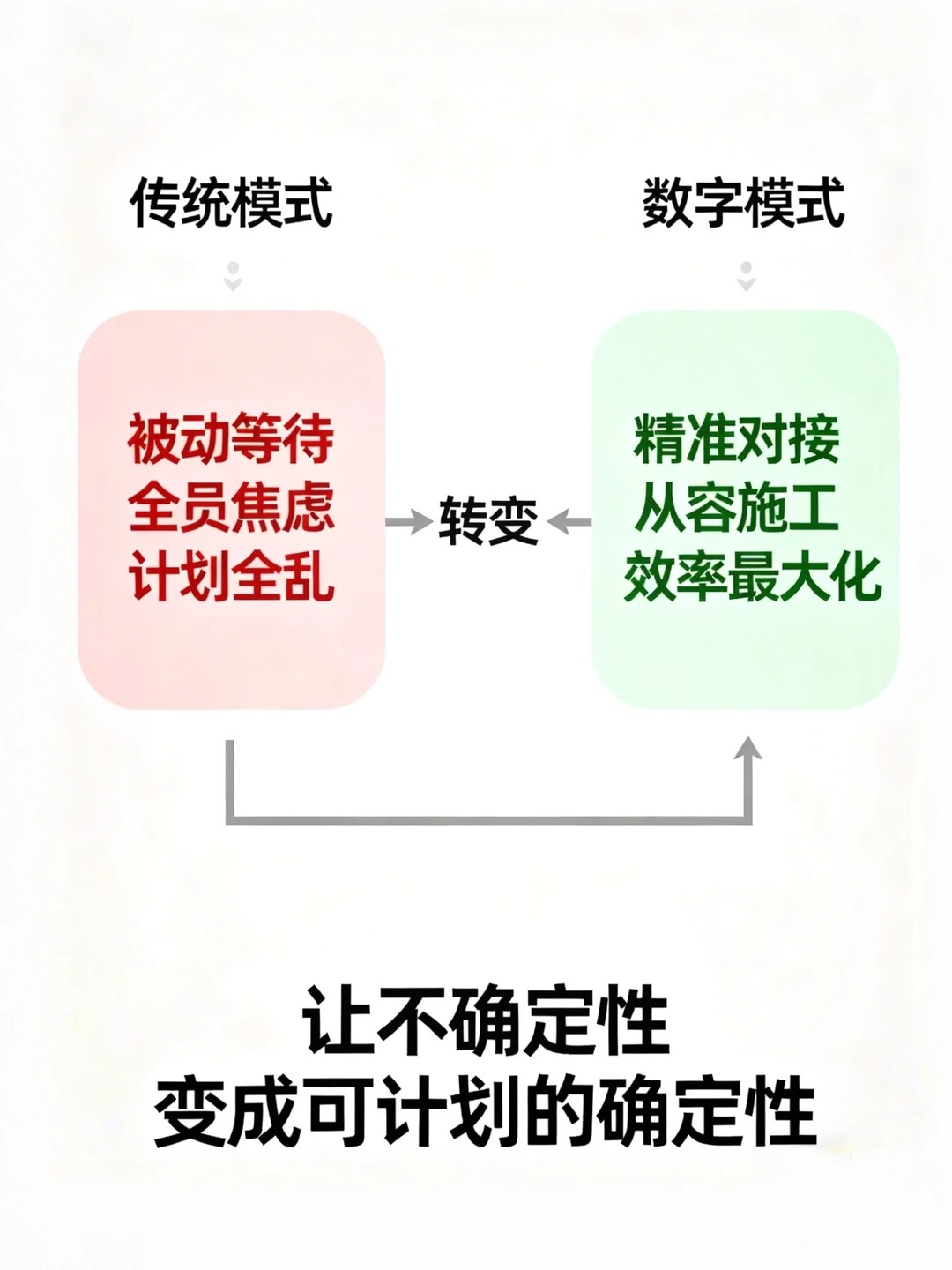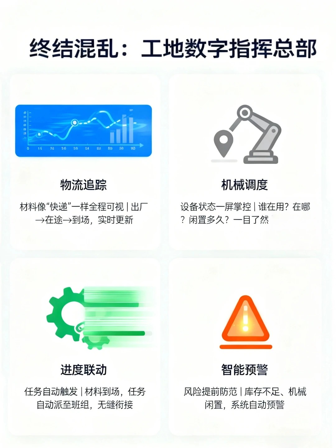 哪个工程人没经历过—— 人齐了,机械到了,计划好了… 材料没到! 结果就是成本失控、进度告急。 问题的核心是 “失联”。 今天不吐苦水,直接上干货:如何打造一个 “工地数字指挥部”,终结混乱。 - 🚀 “工地数字指挥部”核心功能拆解 1️⃣ 材料追踪:像查快递一样管物资 ▷ 传统模式:电话催、群里问、司机说“快到了”。 ▷ 系统模式:采购单生成唯一追踪码。出厂、装车、在途、到场,每个节点手机扫码/打卡,位置与状态自动同步至云端看板。 ▷ 你能看到:“螺纹钢 · 32mm”已于今日8:30从钢厂发出,预计14:00到达1#仓库。运输车实时位置可查。 - 2️⃣ 进度自动关联:让流程“跑”起来 ▷ 传统模式:材料到了,跑去通知施工员;施工员再安排班组,信息传递慢半拍。 ▷ 系统模式:关键物资进场扫码确认的瞬间,系统自动向关联的施工员及班组推送任务:“钢筋已到位,请开始绑扎。” 任务、资源、进度自动串联。 - 3️⃣ 智能预警:从“救火”到“防火” ▷ 传统模式:钢筋用完了才发现要补货,停工等料3天。 ▷ 系统模式:设置安全库存(如:螺纹钢存量<3天用量)。系统自动监控,一旦触发,即刻向采购员推送补货提醒,并关联历史供应商一键发起采购流程。 - 💎 这套系统带来的,不仅是工具,是管理革命 对你(老板/项目经理):工地如同 “现场直播”,随时掌控全局,决策有据。 对施工员/班组长:告别繁琐汇报,任务清晰直达,专注现场执行。 对材料员/机务员:库存、设备状态一目了然,工作变被动为主动。 本质是:让数据多跑路,让人少跑腿,让资源利用率最大化。
