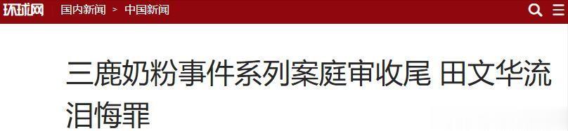 参考信息来源:环球网——三鹿奶粉事件系列案庭审收尾 田文华流泪悔罪