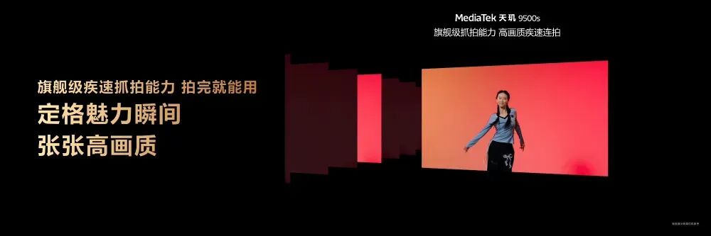 天玑 9500s搭载先进的MediaTek Imagiq影像处理器,支持实时 30 帧运动追焦和 8K 全焦段杜比视界 HDR视频录制,视频创作者可轻松捕捉清晰、生动的视频画面。还支持杰出的抓拍和降噪技术,带来既快又清晰的旗舰拍照体验。