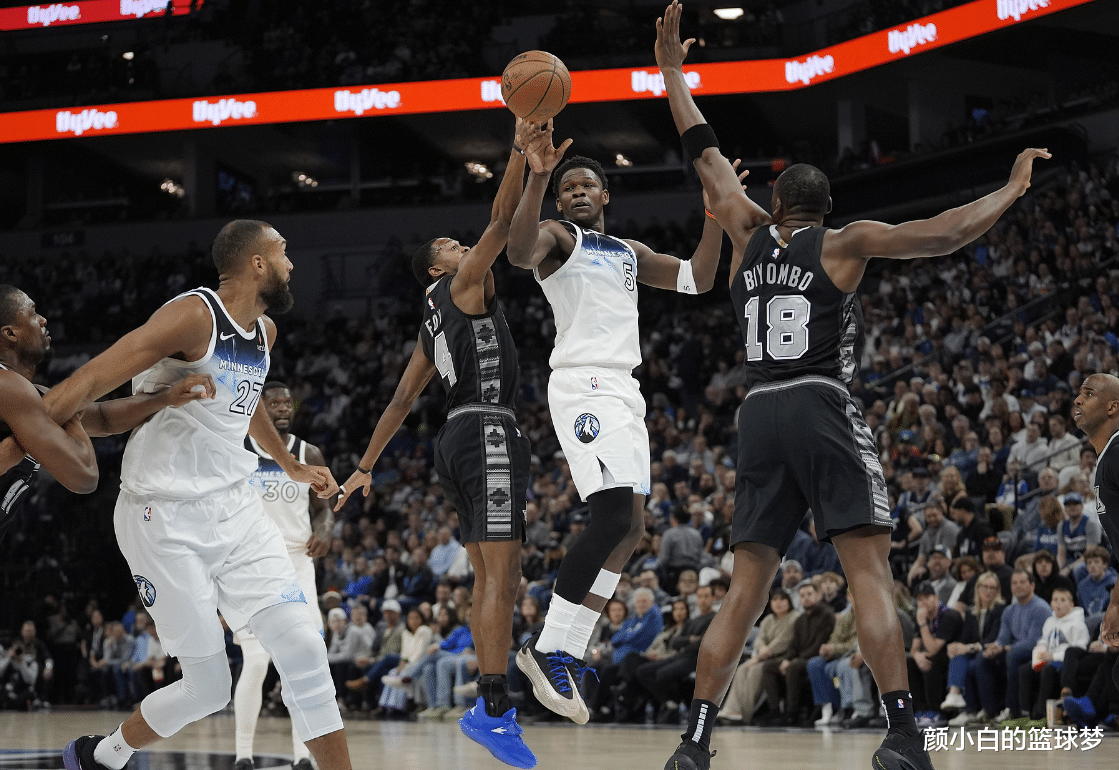 爱德华兹上半场20分钟,7中5+三分3中2拿到13分1篮板1助攻3失误,但他的助力就多了,麦克丹尼尔斯13分5助攻4篮板,康利11分4助攻3篮板,里德15分4篮板2助攻3个三分球,所以森林狼半场领先马刺。