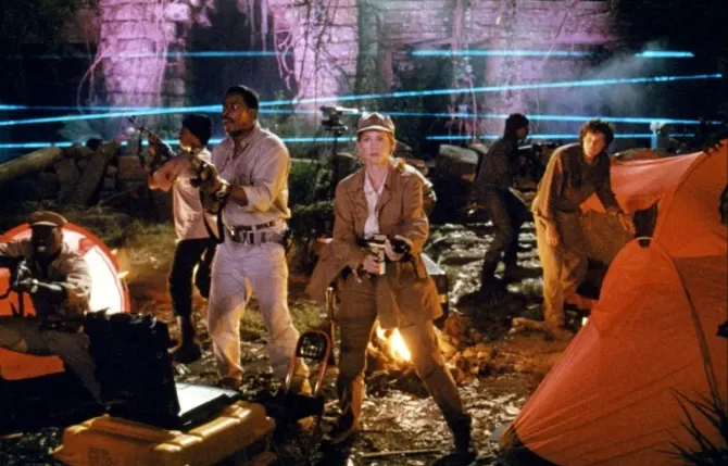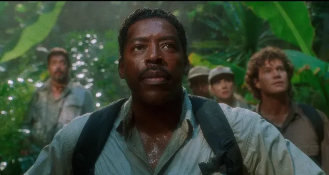 今天推荐影片《刚果惊魂》,本片就属于一个隐藏在科幻片背后的殖民主义被洗白的故事。一家美国的公司被派往刚果执行一项秘密任务,任务的核心在于发掘出来天然钻石。然而被派去的员工在发现钻石之后却遭遇到了不幸。公司只能再派遣员工继续寻找。然而在前一批员工留下来的秘密录像中,公司管理者发现了一个秘密,他们是被一个猩猩攻击。于是,被派遣的新一批员工当中需要找到一个动物学家作为指导。