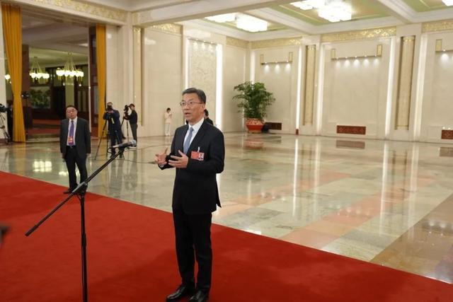 3月5日上午,首场“部长通道”在人民大会堂北大厅开启。这是国家金融监督管理总局局长李云泽正在接受采访。