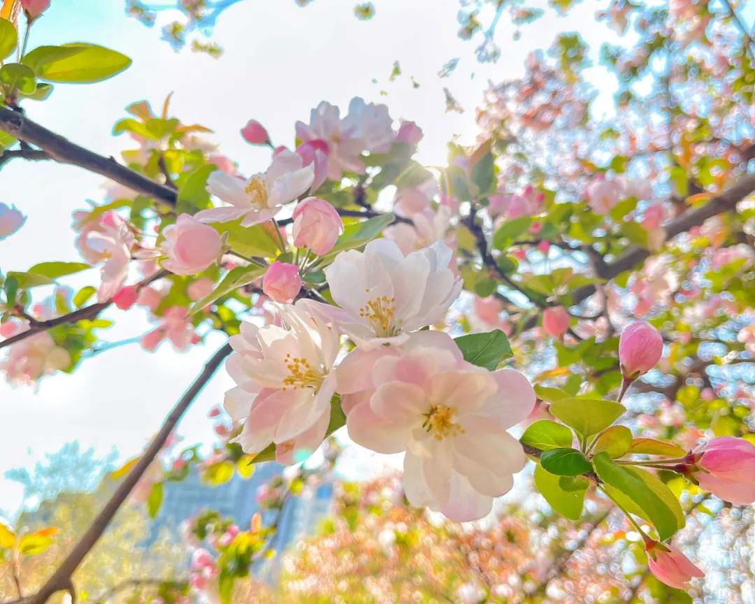 推荐地点:金海湾滨江公园、照母山森林公园等,海棠花在滨江公园的核心区域位于滨江步道中段,以垂丝海棠和西府海棠为主,金海湾滨江公园的晚樱也正值花期,不要错过哦。