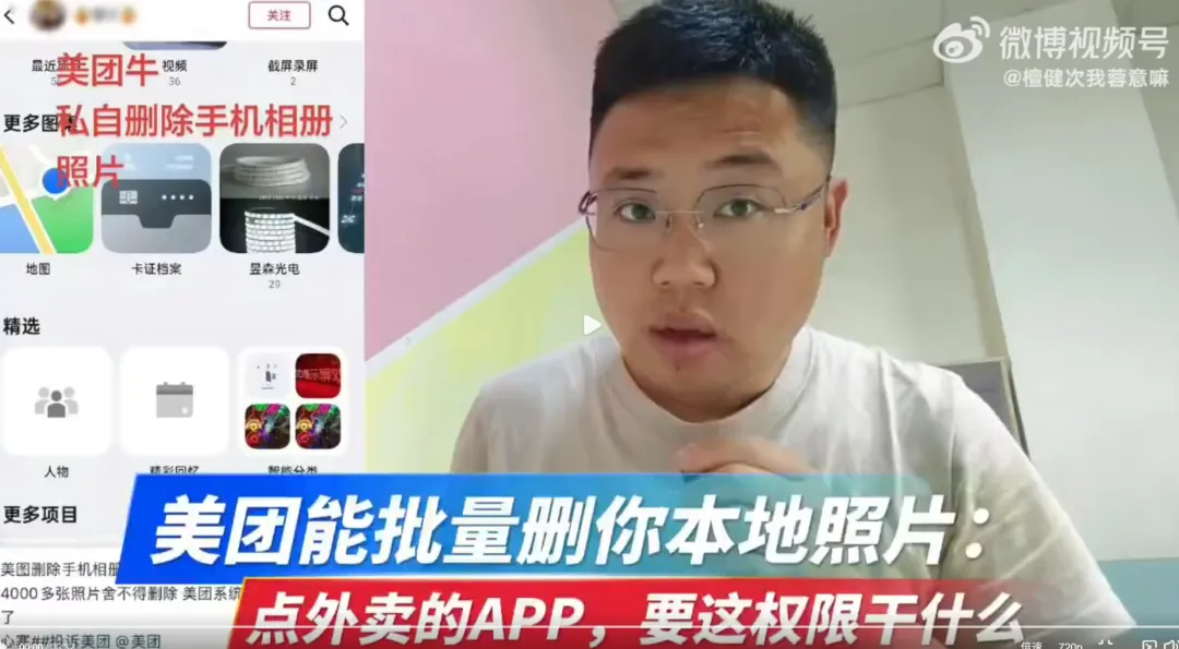 “一个APP,能够删除用户本地照片,还是批量删除,这是典型的权限过度。所以你一个餐饮APP,要调用我们全部相册图片,你想干什么??”
