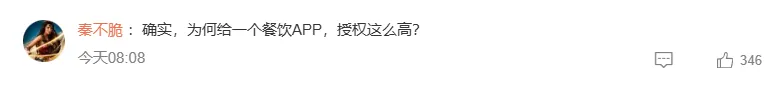 网友秦不脆:为何给一个餐饮APP授权这么高?