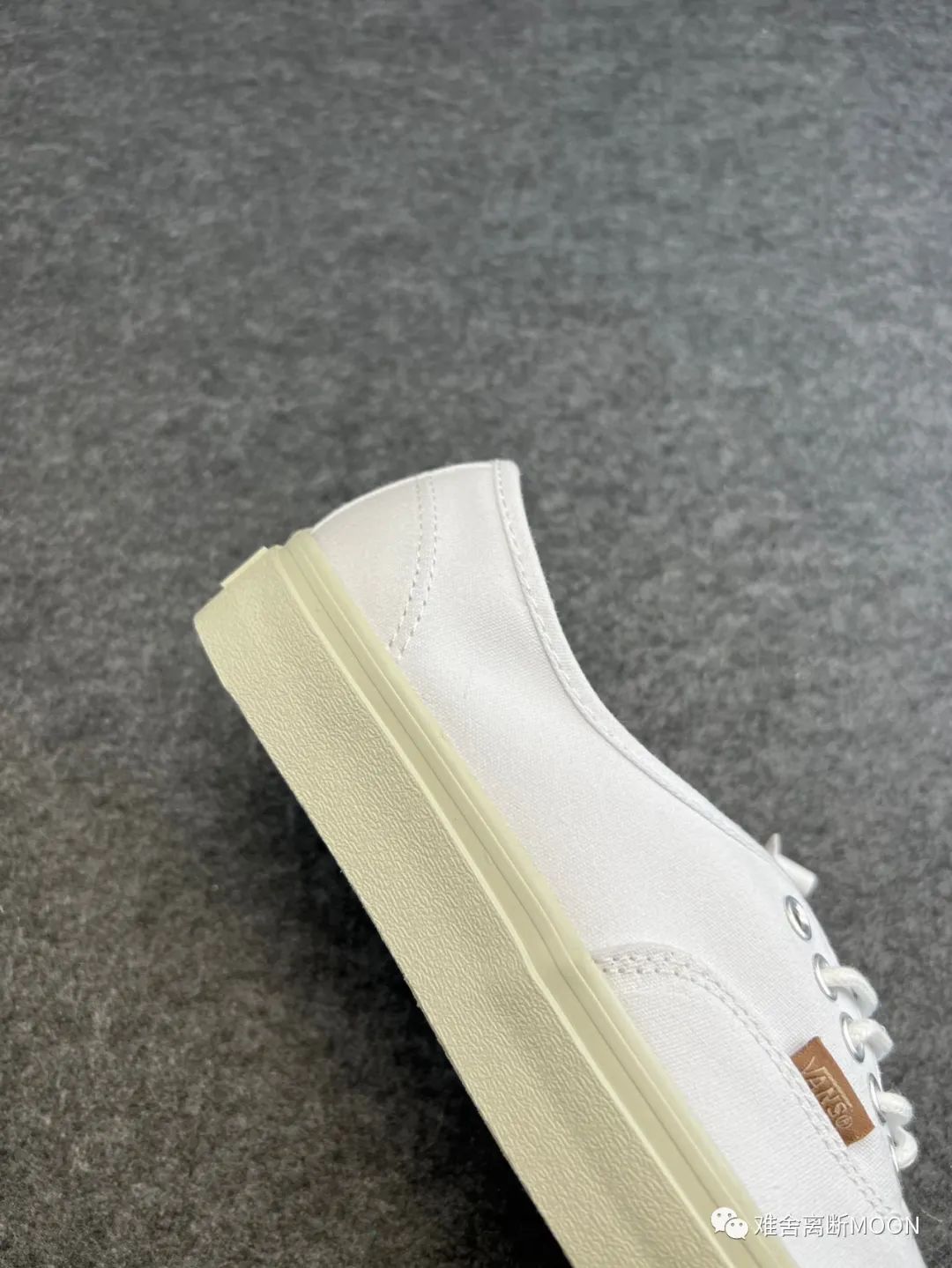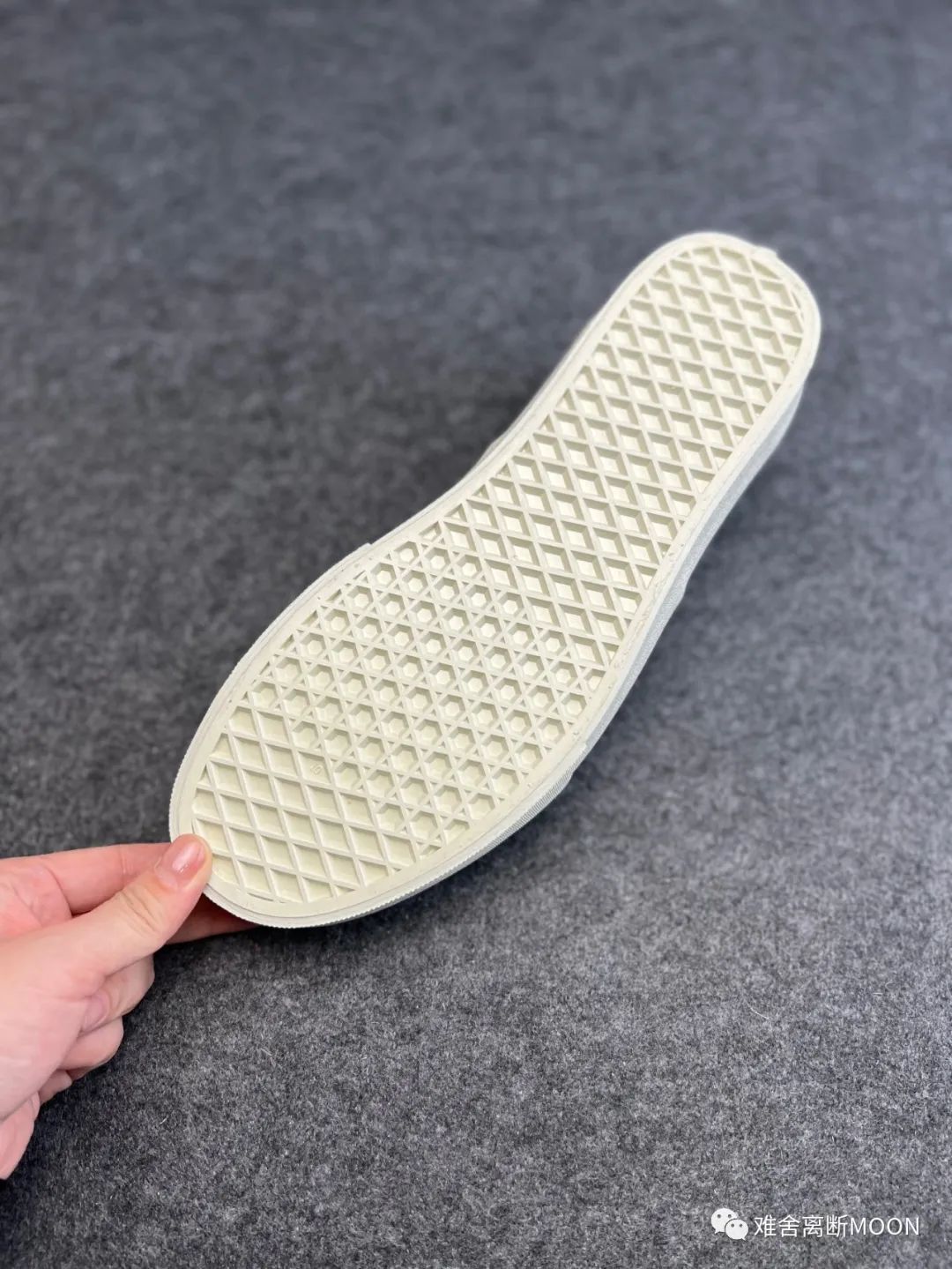 鞋款通体以经典白色呈现,鞋底选用 Vans 标志性橡胶华夫格大底,保持品牌经典格调。